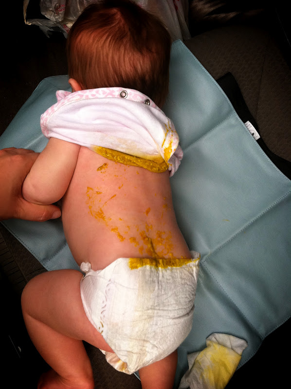 So I think our quest to use up our remaining size one diapers has finally ended. White flag waving. The war is over, and I have lost. The casualty count rests at about $20 worth of now-too-small diapers, three of our bed pillows and this onesie, which was so badly wounded I put it out of its misery. I assure you it will receive a proper burial.