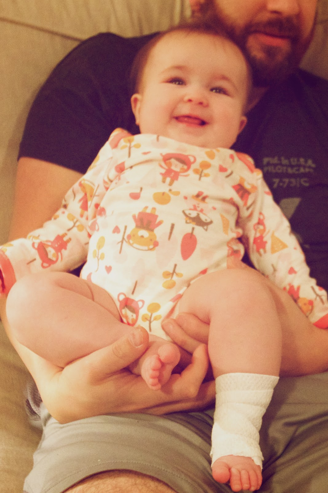 E.V. and I couldn’t go to his appointment with him, so when he got home, we wanted to cheer him up. So we decided that Emma Vance should be just like her dad with a boo boo on her foot. (Hey, it got a smile out of him!) They do say that laughter is the best medicine, right? If that’s true, may I now introduce Dr. Emma Vance Shove. :)