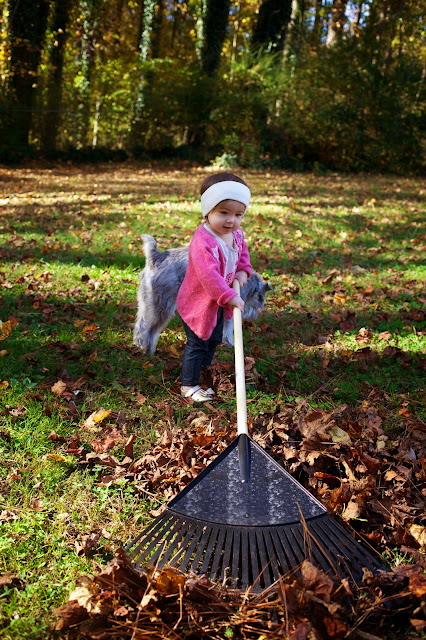 Our property is actually quite large at almost three full acres and has a creek that runs alongside of it. The official “backyard” is fenced in, but the forest comes right up to the edge of the fence and spills over a bit, giving the impression that chaos is about to take over our home at any given moment. There are trees in abundance, meaning leaves in abundance, and they’ve been a great source of shade and entertainment over the past year. (See how E.V. likes to pretend to rake them up? :) ) The dogs always escape from the back door at full force, barking like maniacs to scare away the inevitable squirrels and birds who creep into Oscar and Olive’s territory while they slumber peacefully indoors, and even after the wildlife has scattered away, Olive likes to give a final bark or two of warning to make sure they don’t try to return.