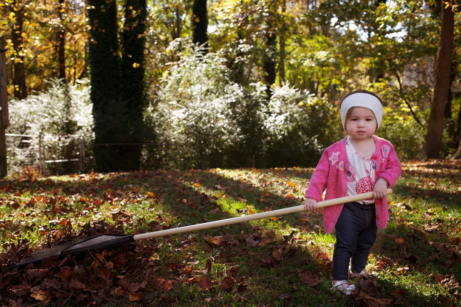 Our property is actually quite large at almost three full acres and has a creek that runs alongside of it. The official “backyard” is fenced in, but the forest comes right up to the edge of the fence and spills over a bit, giving the impression that chaos is about to take over our home at any given moment. There are trees in abundance, meaning leaves in abundance, and they’ve been a great source of shade and entertainment over the past year. (See how E.V. likes to pretend to rake them up? :) ) The dogs always escape from the back door at full force, barking like maniacs to scare away the inevitable squirrels and birds who creep into Oscar and Olive’s territory while they slumber peacefully indoors, and even after the wildlife has scattered away, Olive likes to give a final bark or two of warning to make sure they don’t try to return.