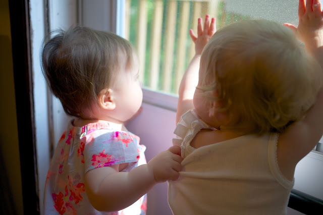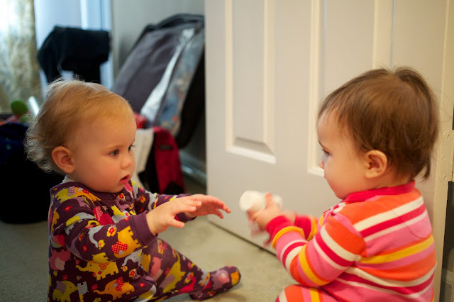 On a side note, when Danielle and I were out in public we were constantly asked if the girls were twins. It took every ounce of self-control and empathy not to reply in a sarcastic tone, “Oh, yes, of course they are! Feel free to ignore the fact that the blond-haired-blue-eyed woman is HOLDING the blond-haired-blue-eyed baby and that I’m HOLDING my completely-opposite-of-blond-haired-blue-eyed doppelgänger.” I suppose people just see cute babies and lose all sense of reason? :)