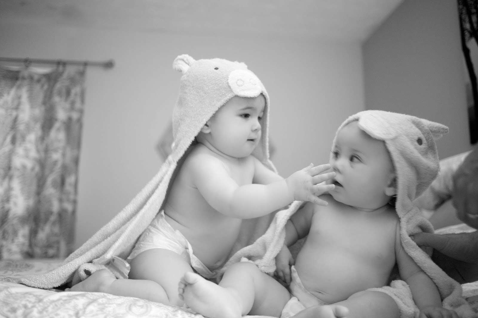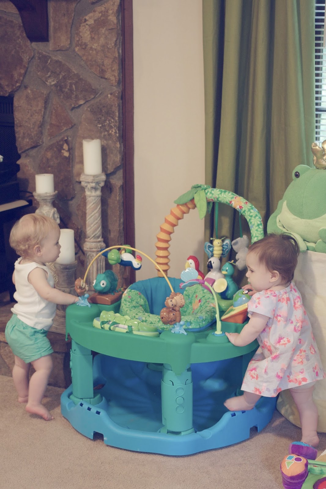 The visit was too short, and these numerous pictures will both give you an idea of how the visit went and (hopefully) brighten your day. The gist of it all? Well, they’re both babies, so there was eating, playing, bathing and sleeping–as well as some diaper changes, bumped heads and toy-sharing. Enjoy!
