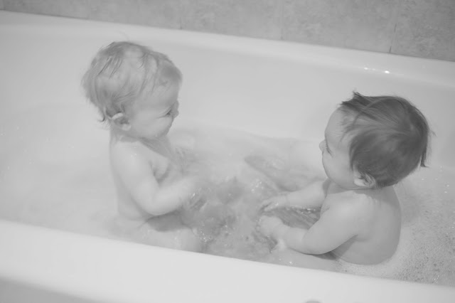 They took a bath, and Emerson splashed like crazy, which cracked E.V. up:
