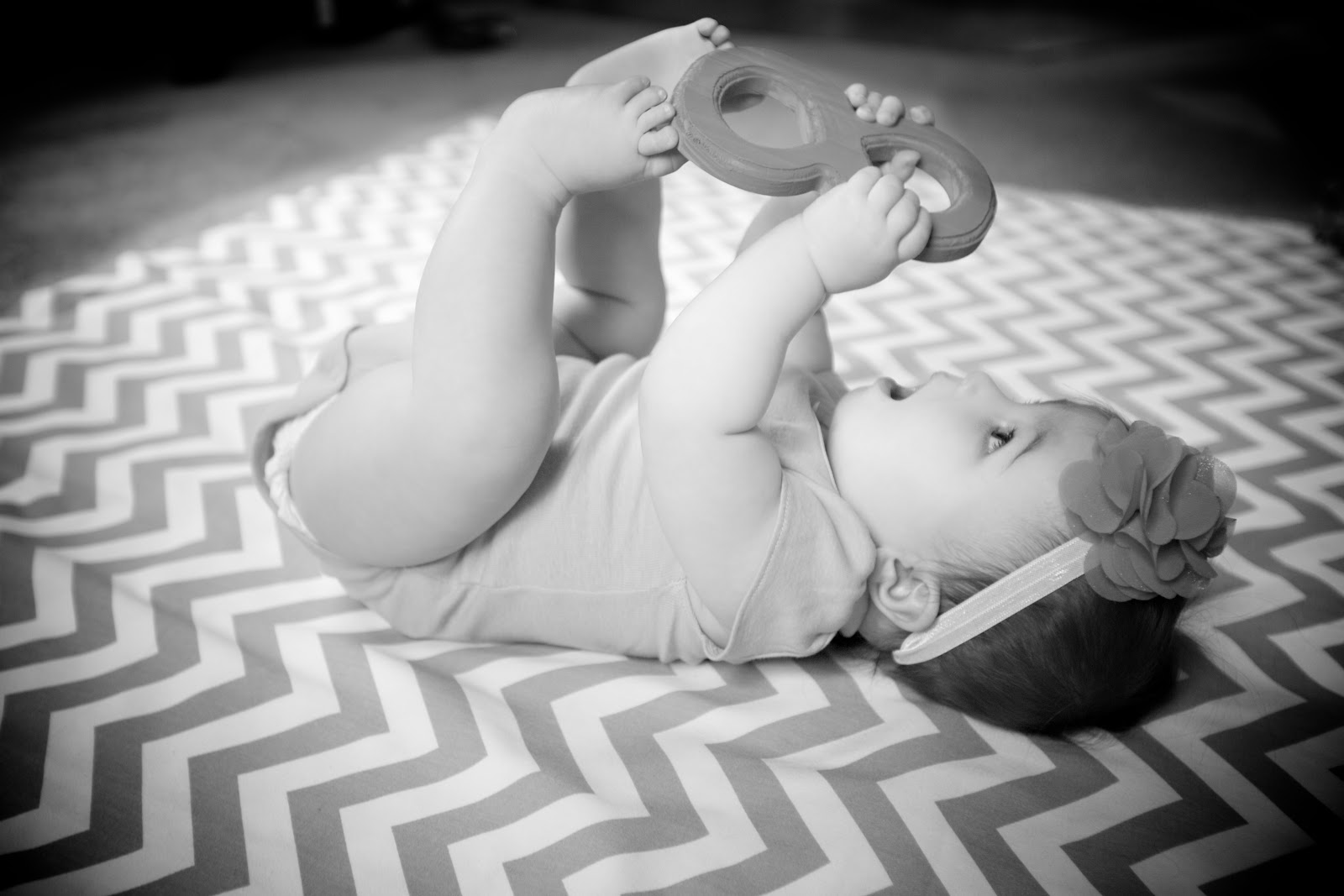 Because you have this newfound mobility, you are into EVERYTHING. Seriously, I can’t turn my back on you for a moment! It’s so fun to see which toys and objects you really prefer (versus my handing you toys to play with before), and it’s no surprise that you prefer Mom and Dad’s toys to your own. Whether it’s a phone, a computer or the iPad, you love technology (and its shiny, moving screens)! You also love to chew on paper (weird), and when I put you down in the bathroom to play while I shower, I’ve learned to hide the toilet paper. The first time I found you with a mouthful, I grabbed it away from you, thinking that would suffice; however, for the rest of the day I was digging out spit wads from your chubby little cheeks. Yuck! I’ve also been a little challenged when I have to be in the kitchen; although it’s close to the living room (where your toys are), it isn’t a direct view, so I’ve been setting you down on the floor next to me. To keep you occupied (and in one place!), I’ve been giving you pots and cups and spoons, making your own little drum kit and teaching you how to play it. You aren’t to bad for a novice! (Ha!)