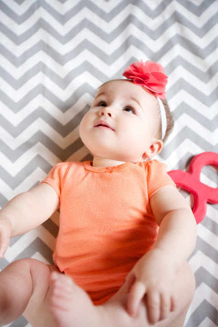 You spend so much time in the kitchen nowadays, especially since we’ve added self-feeding to your mealtime routine. You LOVE to pick up your own food and feed yourself, so usually for lunch you have bananas, avocados and veggie puffs. Last month you were going through a picky-eater stage, but this month you’ve been content with whatever we place before you. (Although you do like chunks of banana WAY more than pureed banana.) You gobble your fruits and veggies up and are always excited when you see me making a bowl of oatmeal. It is by far your favorite food (carbs!). You’re taking the same amount of milk and formula last month, because when I tried to up your bottle intake this month you barfed everywhere, every time I tried to sneak another ounce into you. I give up! White flag! :) You’ve never loved or hated bottles, but in order to speed things along, we’ve been occasionally giving you your formula via syringe, which you LOVE. We’ve tried several sippy cups this month to no avail. HOWEVER, your favorite drinking method of all is to drink like a big girl, “cup style” as your dad and I call it. (I can’t wait for you to be big enough to drink like that on your own!)