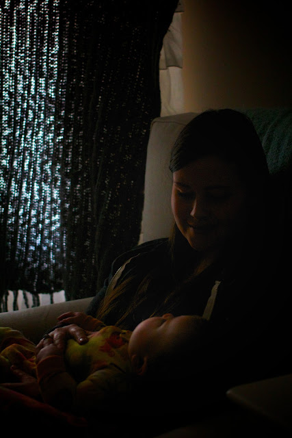I thought all about our lives and how they’ve changed. I thought about the first night we brought Vampire Baby home. How vivid that image still is in my mind–the one of Ryan holding her in the very same rocker as dawn crept up on us, brand new parents with no clue what to do. I thought about how if this were any other baby in the world I’d be miserable and cursing her. I thought about how this wasn’t just any other baby in the world, how this was Emma Vance, and how I’d gladly hold her ’til kingdom come if necessary. I thought about all of the stories we’ve lived through over the past seven months. I thought about how these moments are so fleeting; in just a couple of years I won’t ever be able to do the privilege of holding her in my lap throughout the night ever again. Then, eventually, I thought about my legs, full of pins and needles…and of how cold the room seemed…and how exhausted I was…and how heavy she was…and how dry my throat felt…