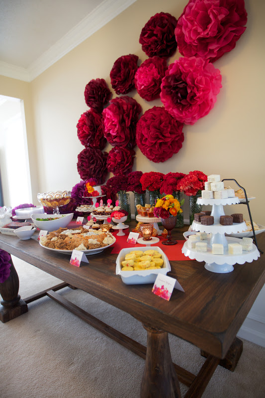 I had painted a watercolor tablecloth for the event, but overnight the colors ran and it turned out hideous (#craftfail)...which was a blessing in disguise because Christine has the most gorgeous dining room table ever! |