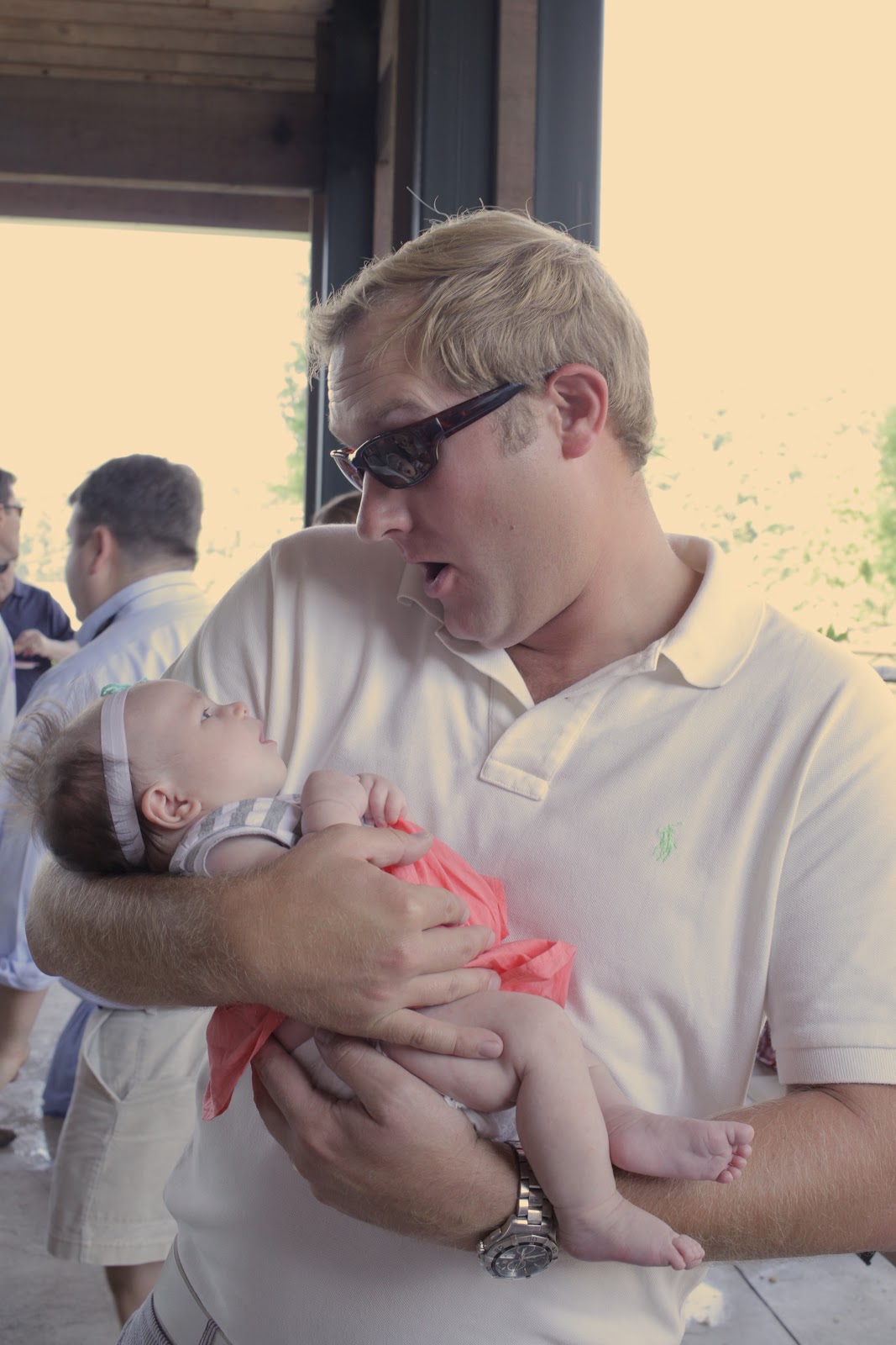 E.V. was relatively good, content to be passed around a bit and to take in all the new faces. When we hit the three-hour mark, our little Babywise baby started fussing from hunger, so we said our goodbyes and drove to (what we thought would be) a secluded area of the park to feed her. I was thankful to have a view of the lake from the empty parking lot as she ate…that is until the rednecks showed up, MOONSHINE and all to fish. Lovely. This is my life, people!
