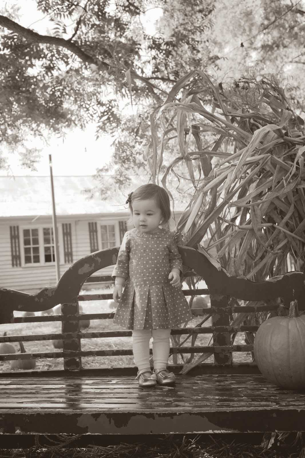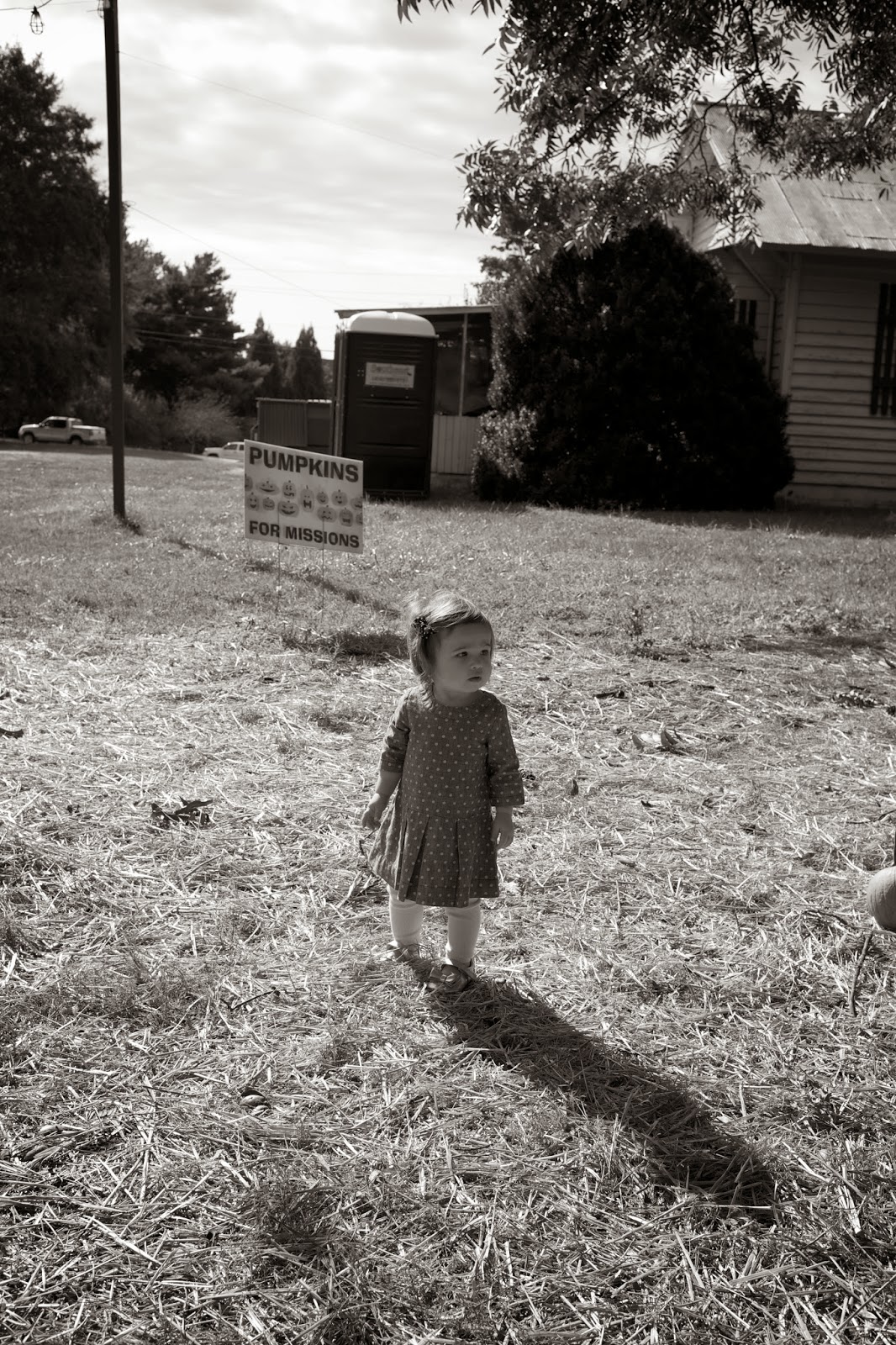 Yesterday was Pumpkin Patch Day for E.V.’s 1s Class, meaning the moms were called in for backup. (I can’t blame them for requesting assistance; keeping track of eight one year olds is like herding cats!) Unfortunately it was one of those mornings for me: the garage door froze (literally) and wouldn’t close, I attempted a slew of unsuccessful errands, a Starbucks barista insulted my name, E.V.’s teacher called because her new shoes were too big and falling off, I lost my car keys–and all this before noon! However, half an hour spent chasing my little escape artist and her classmates around the church’s pumpkin patch was a much-needed bright spot in my otherwise ugly morning. The highlight of the visit? An attempt to gather all the kids for a class picture…which was an experience that I’ll leave to your imaginations, save to say that E.V. took the opportunity to push all the decorative pumpkins off the bench (to make room for all the other kids, duh). Let’s just say that next year will be a much easier shot to get!:)