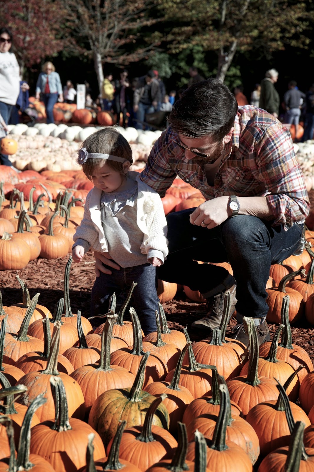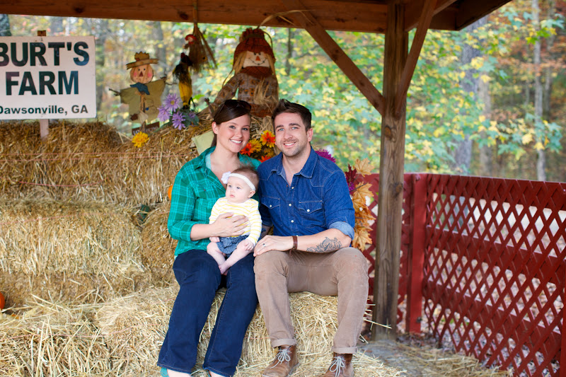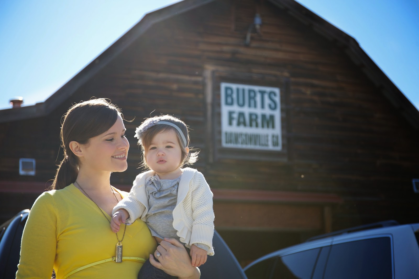 It’s our little family’s tradition (along with most of the metro Atlanta area’s as well!) to visit Burt’s Pumpkin Patch in the North Georgia Mountains each October. Since it’s a full hour’s drive north of our house, we usually spend the day in the mountains, hopping from site to site and making the most of the travel time. With Ryan’s jam-packed work schedule this fall, however, we took one look at the October calendar and realized that going Burt’s this year wasn’t going to happen. I came to grips with the decision and began seeking out the best local pumpkin patches for Emma Vance to explore when a teeny, tiny window of time suddenly opened up in Ryan’s schedule this weekend. We decided to make the most of that window (Who needs sleep anyway? Not us!) and made an abbreviated trip to pick out our pumpkins yesterday. True, we skipped our annual apple cider donut stop at the nearby Hillcrest Orchards, but I had to remind myself that Burt’s really is the main event–and my growing baby belly can certainly do without fried stuff and sugar! :)