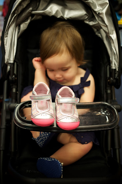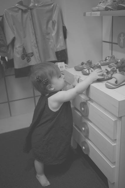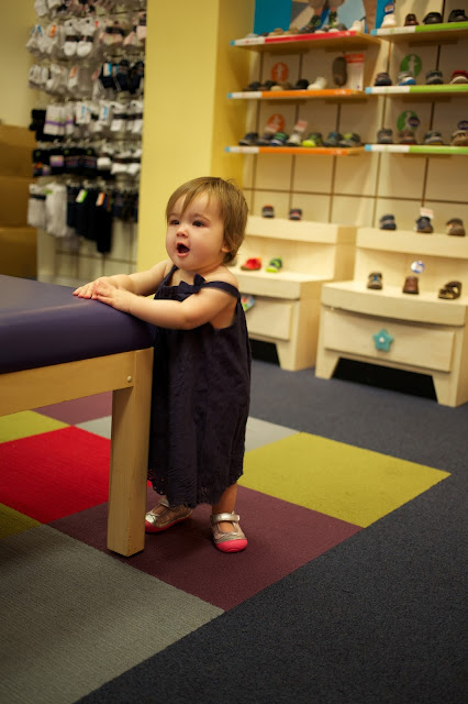 They measured her feet (and apparently I’ve been buying shoes that are way to small for her…oops); we picked out a couple of pairs based on my hemming and hawing about the lack of grown-up-looking, pretty options (and my drooling over the cool boys’ styles!); and E.V. tried a few on to see if she “liked” them. :) We came out with a pair of rainbow chevron, mary-jane-styled sneakers, and I’m resolved that if I can’t find cute shoes to match her outfits, then we’ll go the opposite direction and make sure they purposely don’t match anything. (Success.) Come travel day when I’m chasing a toddler around the grimy-floored airport, I’m sure that I’ll appreciate her new shoes–wild colors and all. Pray for me. ;)