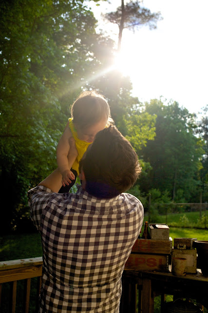 (Says the man who has never paid one of our utility bills.) His quick thinking made me smile, and so for tonight, his desire to bask in the dusky light while on our living room couch won out. I went back to my dinner preparation, and when things got suspiciously quiet, I found Ryan and E.V. playing on the back deck. Sigh. I suppose leaving the storm door open is fine with me–for tonight at least. :)