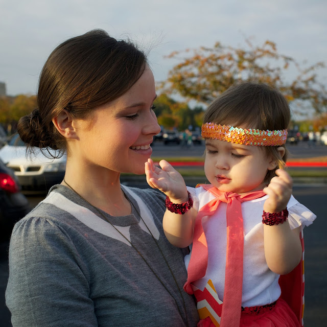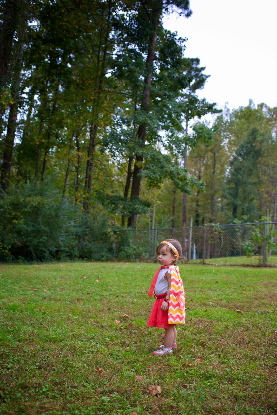 Today was Superhero Day for the little kids at church, and of course I had to dress Emma Vance up for the occasion. Yesterday I had already planned a trip to JoAnn’s and some sewing anyway, and so it wasn’t a big deal to whip up a quick cape. Plus, let’s be honest–I’m a sucker for any opportunity to dress up…or to at least live vicariously by dressing up my 16 month old! :)