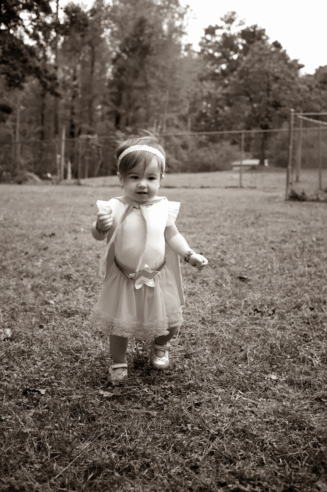 Today was Superhero Day for the little kids at church, and of course I had to dress Emma Vance up for the occasion. Yesterday I had already planned a trip to JoAnn’s and some sewing anyway, and so it wasn’t a big deal to whip up a quick cape. Plus, let’s be honest–I’m a sucker for any opportunity to dress up…or to at least live vicariously by dressing up my 16 month old! :)