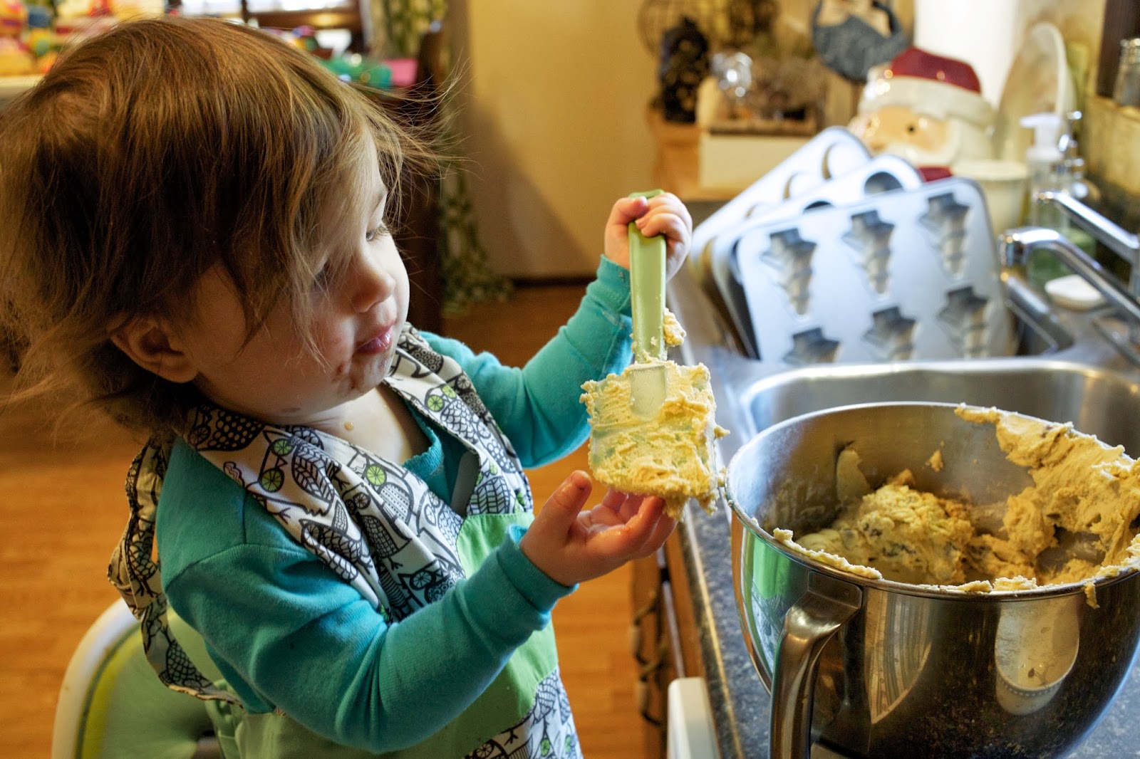 | (practicing her stirring while I measure out ingredients) |