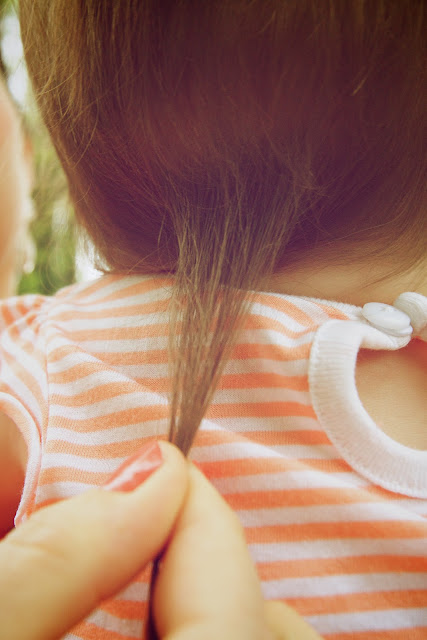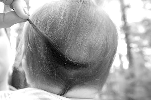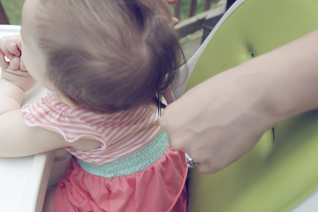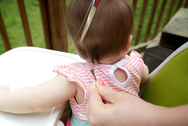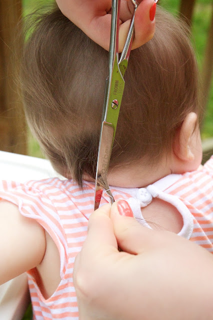 | (Ryan made sure to bind up her first curl very well to add to her keepsakes. Sweet guy.) |
