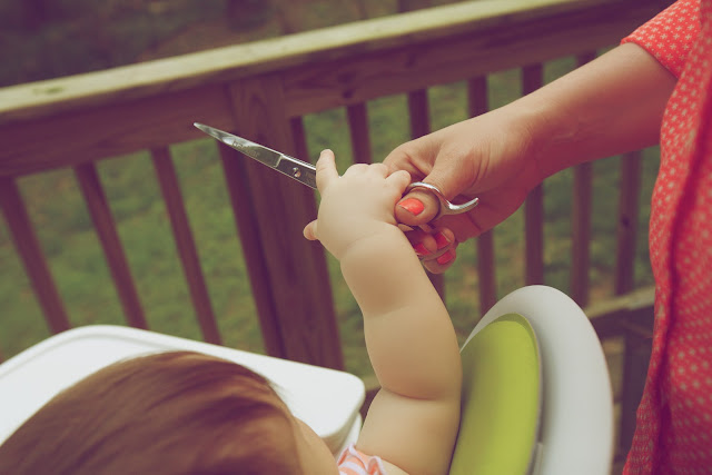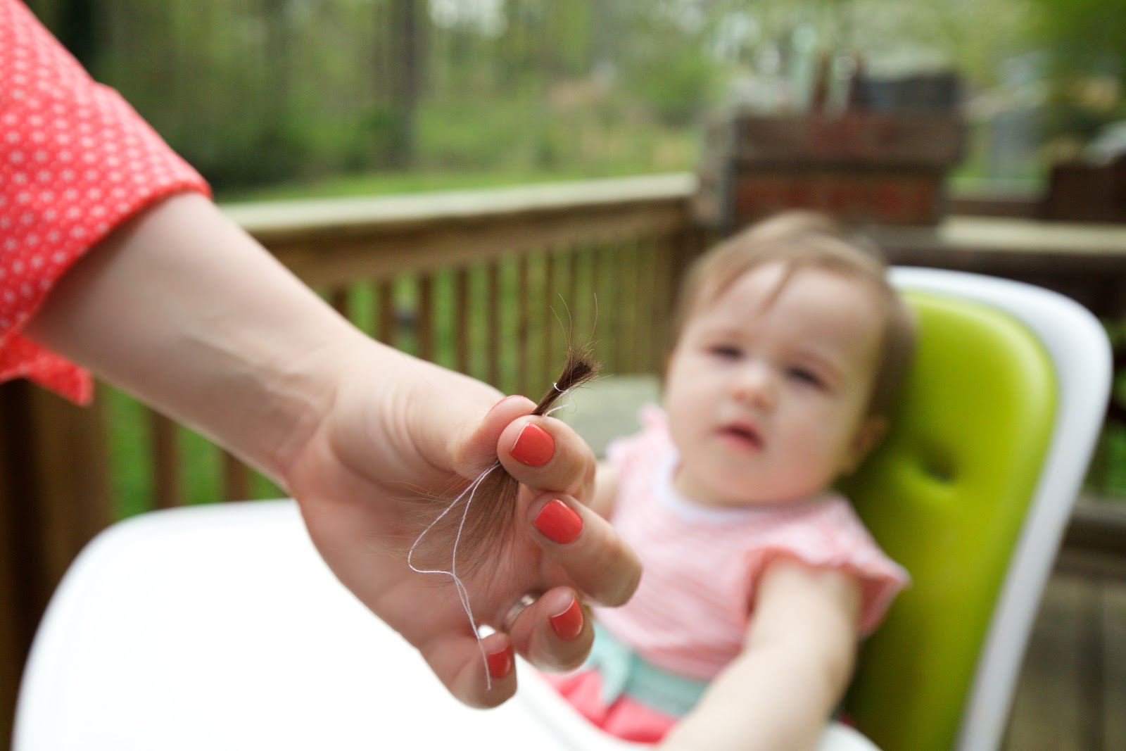 (Ryan made sure to bind up her first curl very well to add to her keepsakes. Sweet guy.) |
