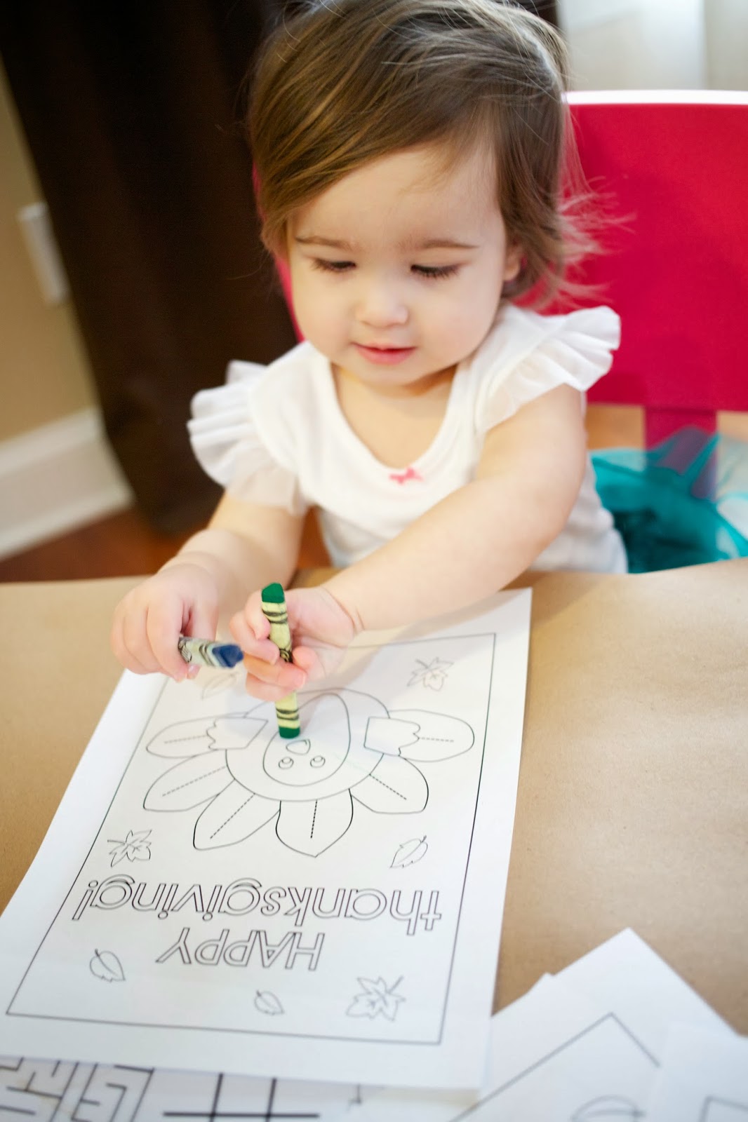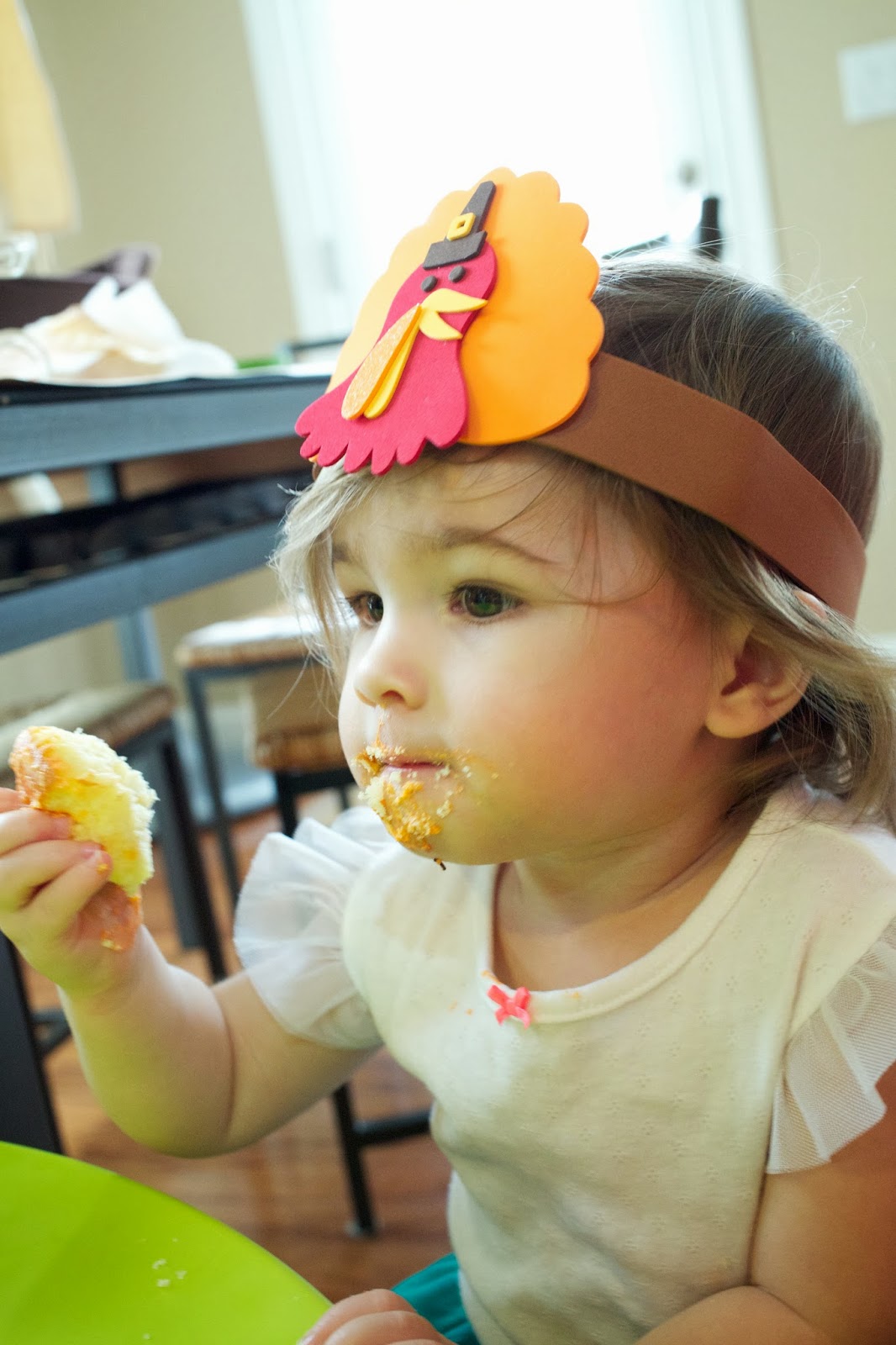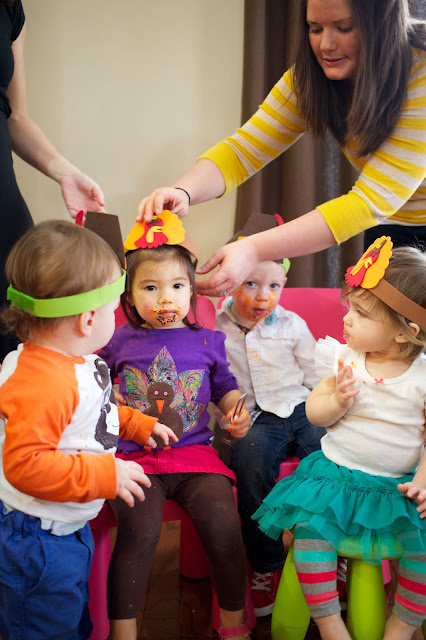 In all actuality, it’s a Thanksgiving-themed play date complete with crafts, favors and a Thanksgiving-ish lunch…and lots of tiny toddlers ransacking the poor hostess’ house. :) We celebrated Toddler Thanksgiving today with a few of Emma Vance’s friends, and I have to say I was unprepared for the meltdowns, the yelling, the injuries, the sudden fear of paint (my child!) and the mess. However, it was also SUPER fun, as evidenced by E.V.’s falling asleep within 10 seconds of being clicked into her carseat. Whew.