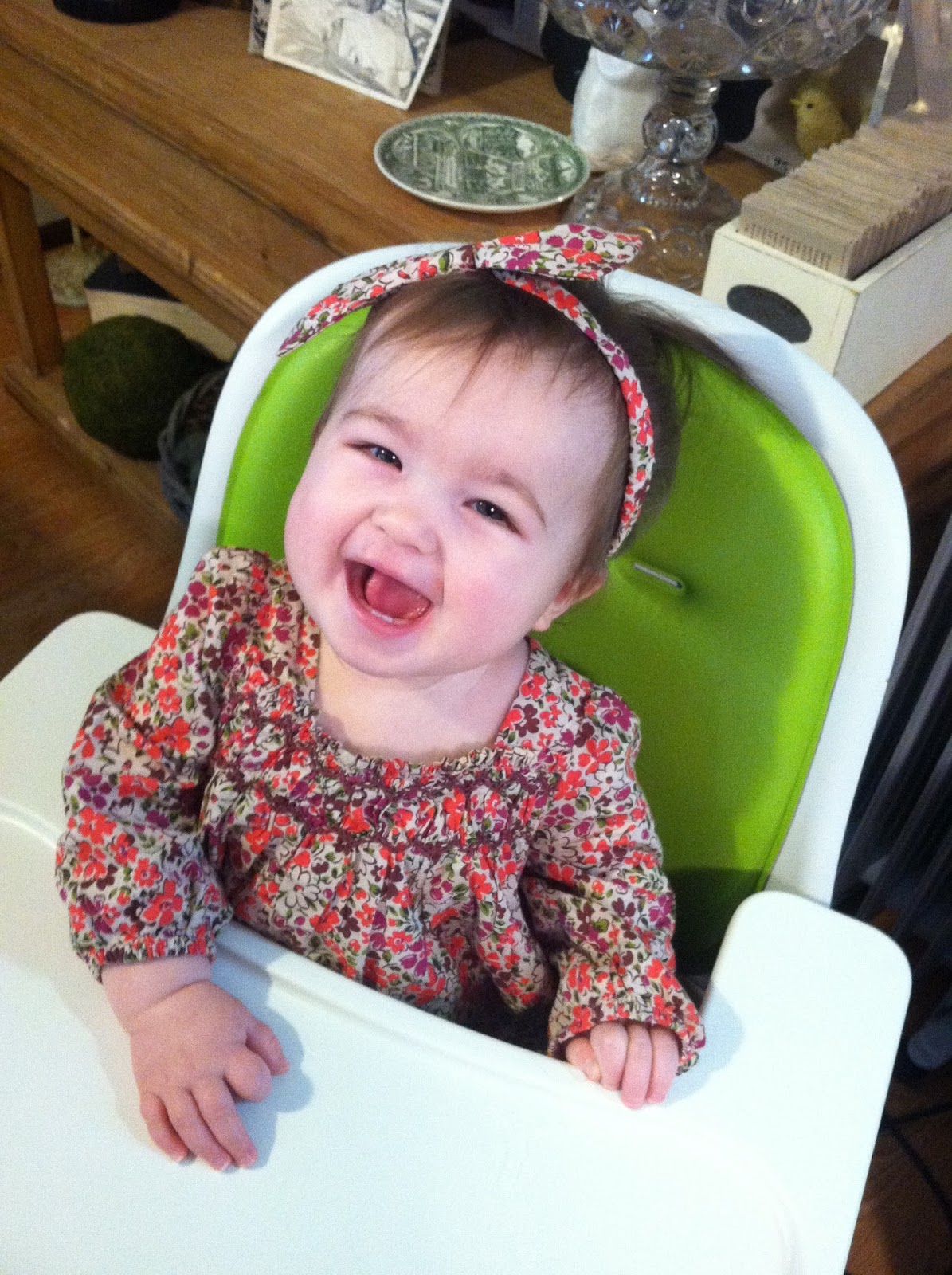 You can tell Ryan’s been gone because he would NEVER allow E.V. to be seen in this outfit: floral, match-y, big-arse bow. However, Dear, I got a ton of compliments on it today, so there! :) Hahaha.