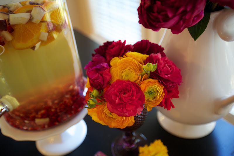 For Alli’s baby shower, we went with a non-traditional theme. The colors were autumn jewel tones, the decor influenced by a watercolor graphic, and the food seasonally-inspired. We hung out, eating and drinking sangria (of both the preggers-friendly and Talie-friendly varieties), decorated onesies for a “game” (sooo jealous because they turned out ADORABLE), and did the obligatory mass gift opening. It was great to see old friends and meet new ones, including Ava, Alli’s BFF’s daughter. She was hilarious, eager to help us decorate, and full of fun quotes. My favorite? She wrote a card to Alli that said, “You made the best baby ever! Mommy did too.” Uh-mazing. (And I agree on both her points!)